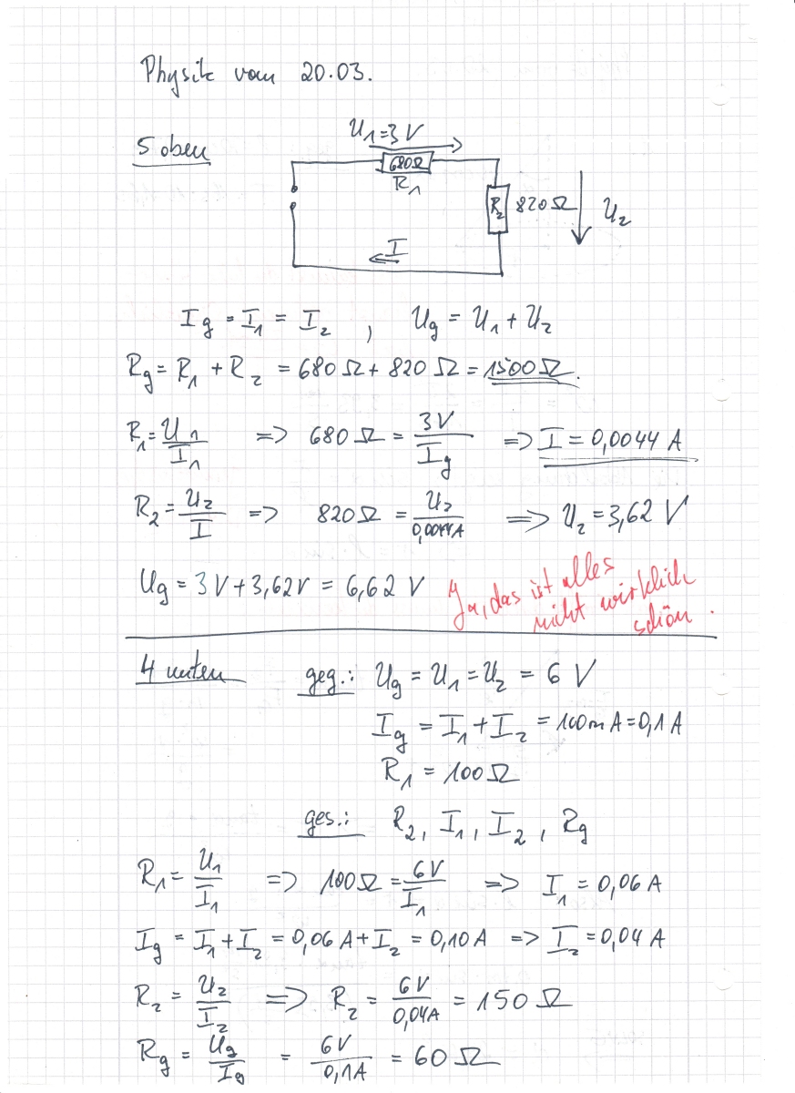 1. Auch wenn ich in der Audio-Datei schon ein schönes Wochenende wünsche, sollen bitte die restliche fünf Aufgaben des Blattes "9a Physik AB II. e" gelöst werden. Die Formel, die ihr zusätzlich braucht, ist: