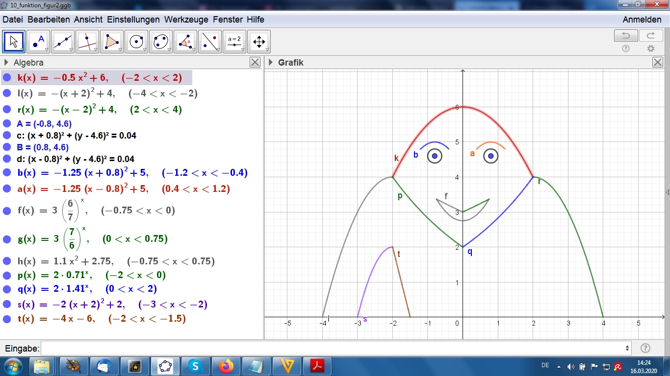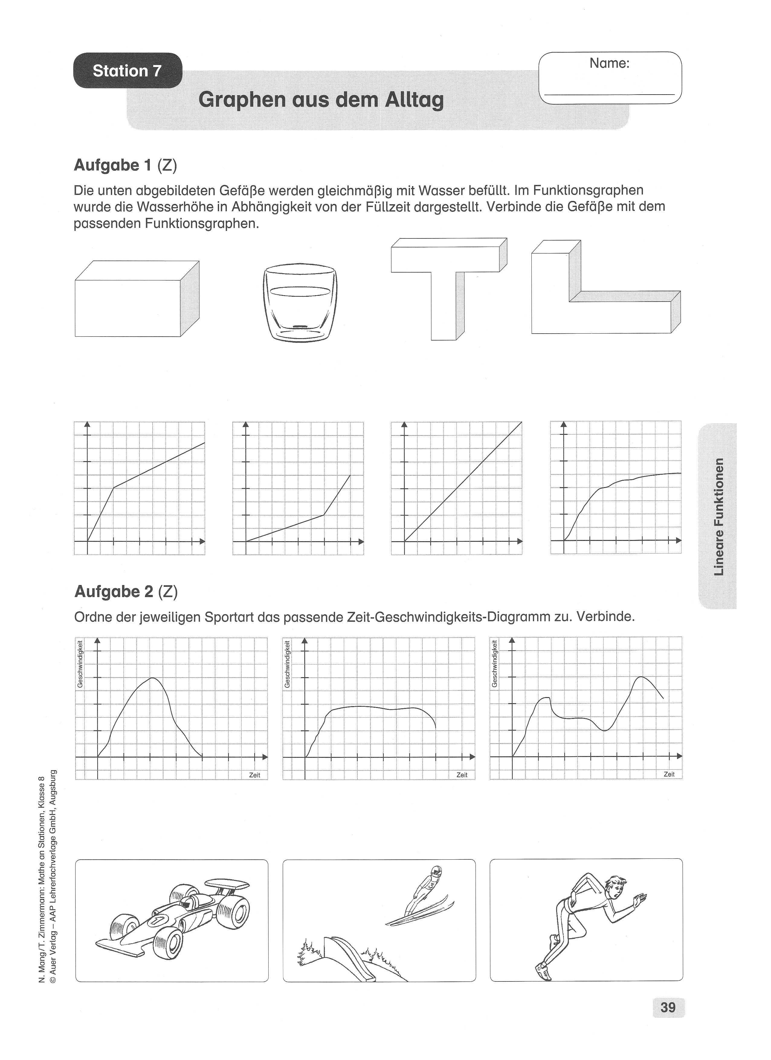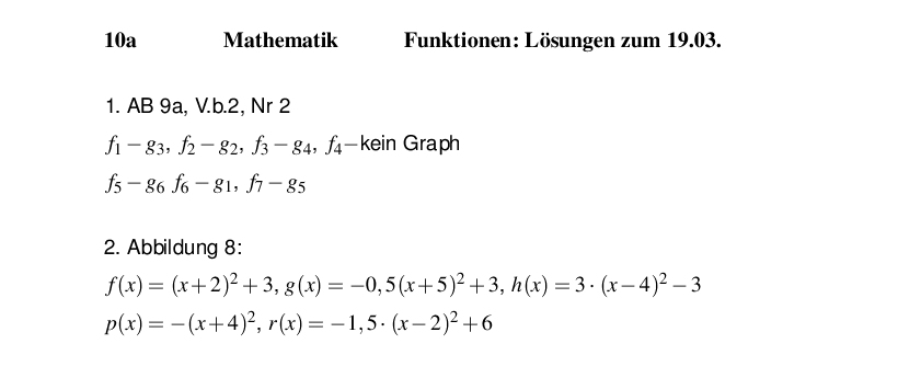 Als Tipp (oder auch zum Vergleichen mit eigenen Lösungen): In der pdf-Datei gibt es sechs Funktionsgleichungen, von denen tatsächlich fünf zu den Graphen passen.