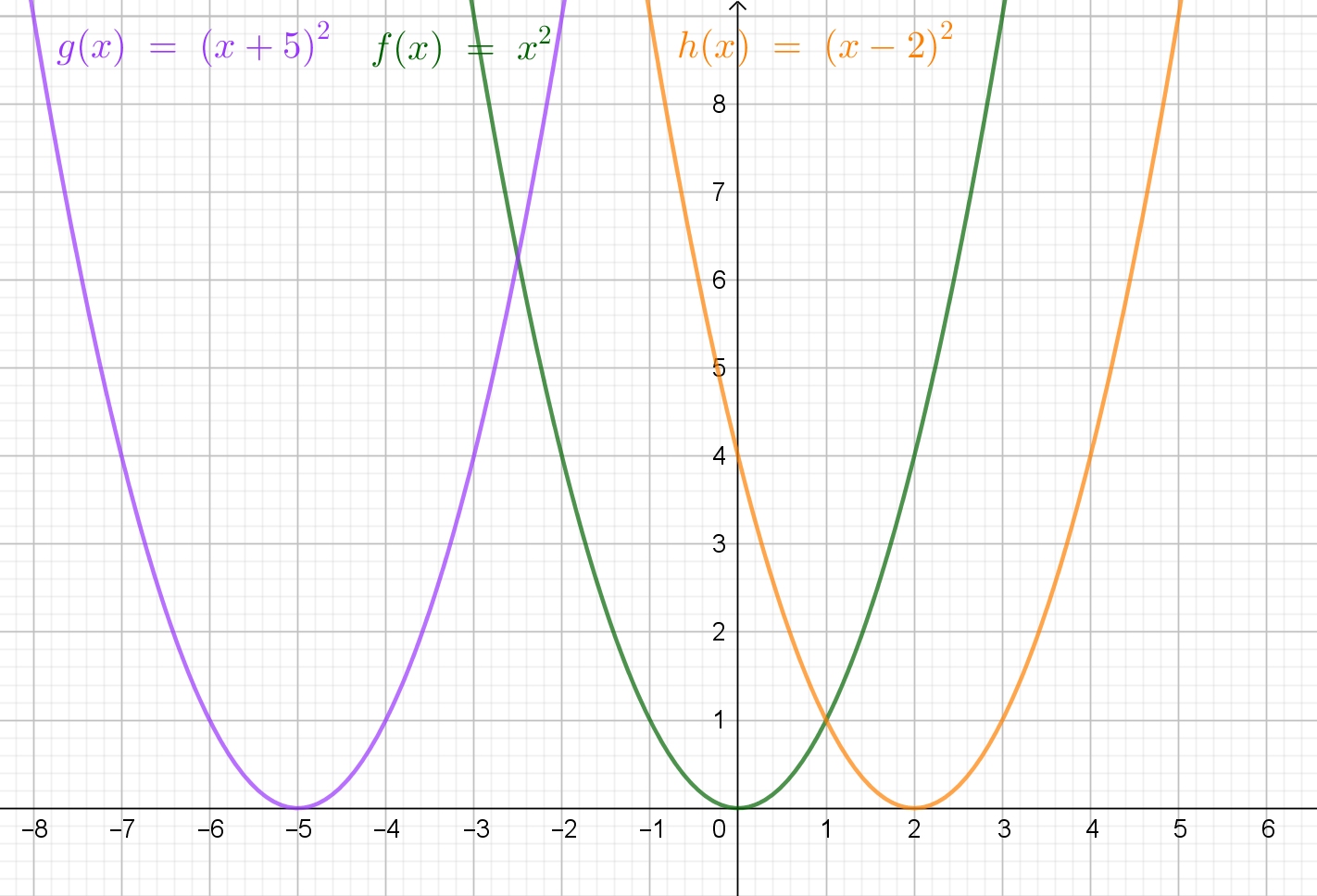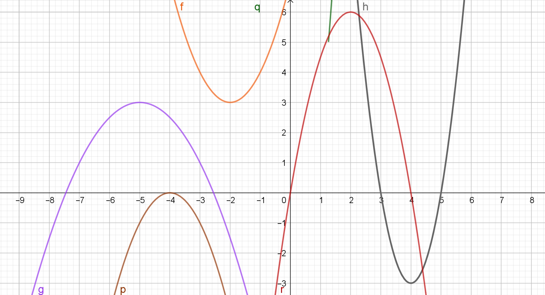 Gib zu allen Graphen die Scheitelpunktform f(x)=a·(x-d)2+e an.