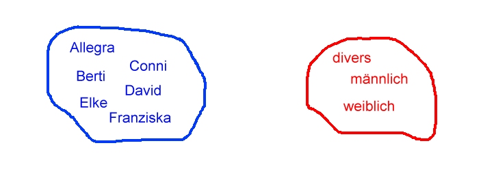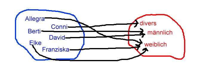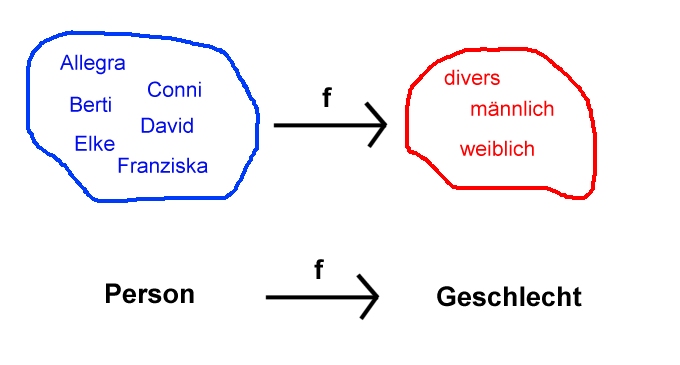 Abbildung 7: Hinweis: In der Aufgabe 1 steht etwas von "die Wasserhöhe in Abhängigkeit von der Füllzeit dargestellt". Was bedeutet der Begriff "Abhängigkeit"? Für unser Beispiel wird das Geschlecht in Abhängigkeit von der Person beschrieben. Das kann man sich so vorstellen: Ohne Person gibt es kein zugeordnetes Geschlecht. Oder hier: Ohne Füllzeit gibt es keine Wasserhöhe.