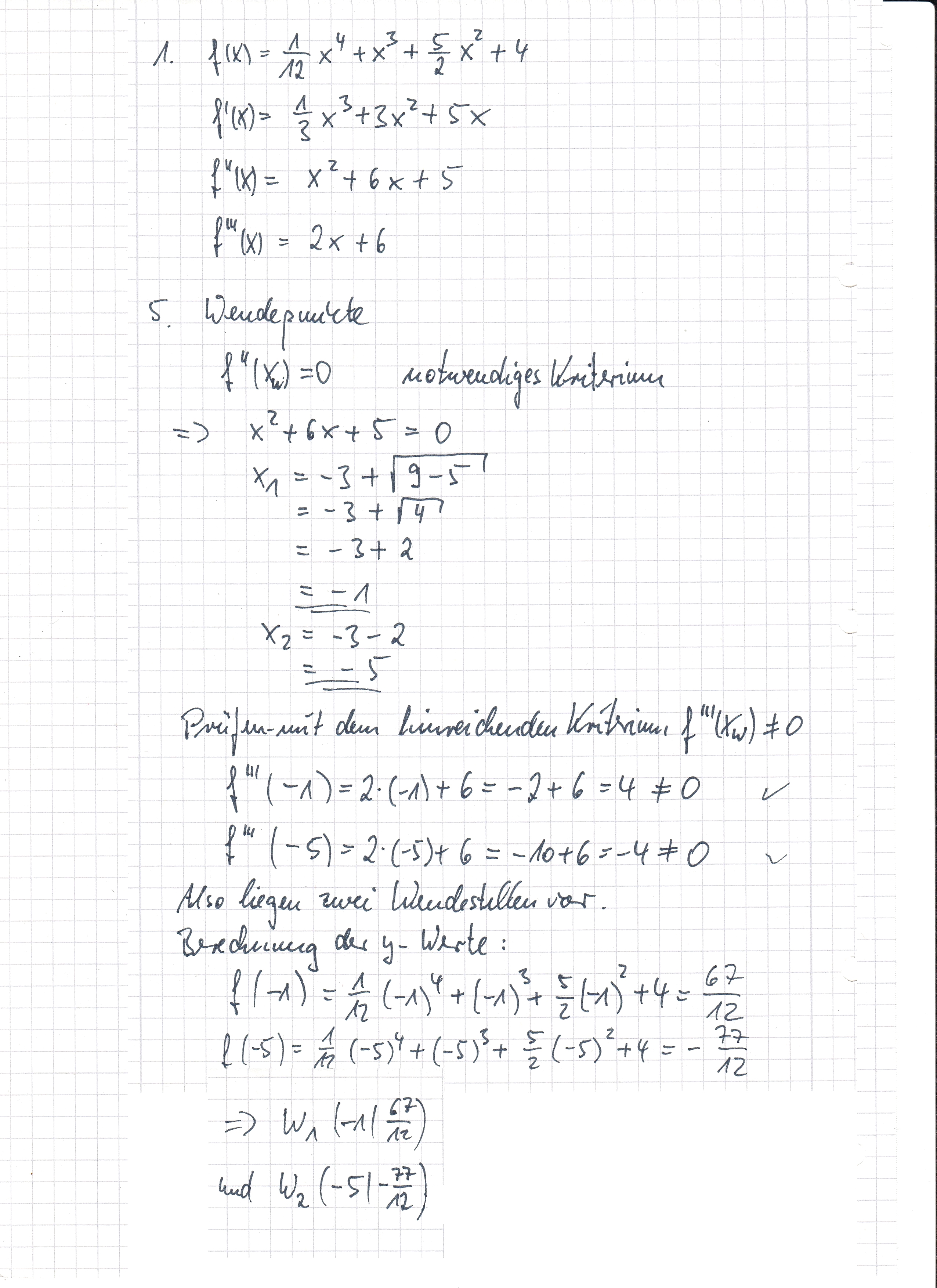 1. Das bedeutet: Im Wendepunkt selbst darf keine Krümmung vorliegen und die zweite Ableitung muss gerade genau null sein.