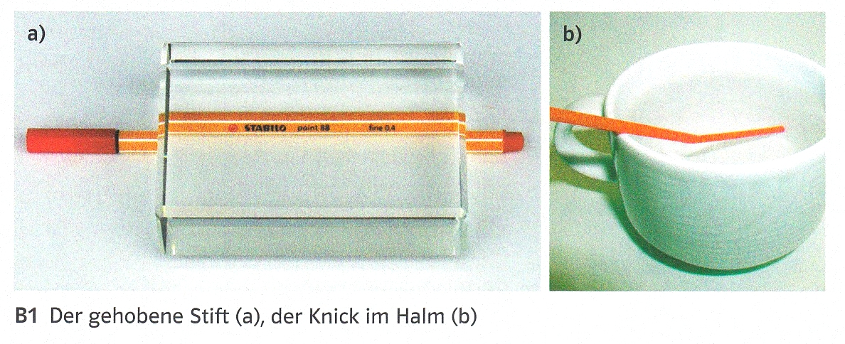 An Grenzschichten zwischen zwei verschiedenen, durchscheinenden Medien tritt Lichtbrechung auf. Sie ist wichtig für das Verständnis der Funktionsweise von Linsen, aber auch für die Zerlegung von Licht in Farben.