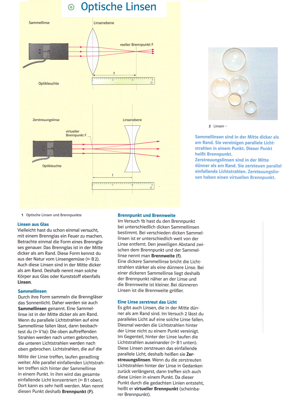 Es geht los mit der Lichtausbreitung. Das brauchen wir eigentlich nur deswegen: Damit man Bilder bei optischen Linsen konstruieren kann (und in vielen anderen Zusammenhängen), muss man wissen, dass Licht ein Bündel von Lichtstrahlen ist.