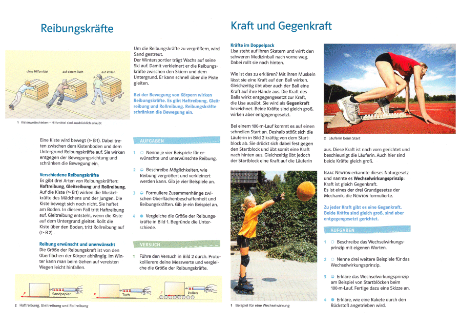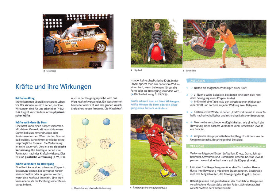 Es geht in der Physik auch oft um Ursache und Wirkung. Kräfte sind oft die Ursache für physikalische Erscheinungen. Ein Beispiel: Die Gewichtskraft ist die Ursache dafür, dass alle Objekte auf der Erde von ihr angezogen werden. Eine Wirkung ist, dass eine Kugel beim Kugelstoßen auf einer parabelförmigen Bahn zu Boden fällt.