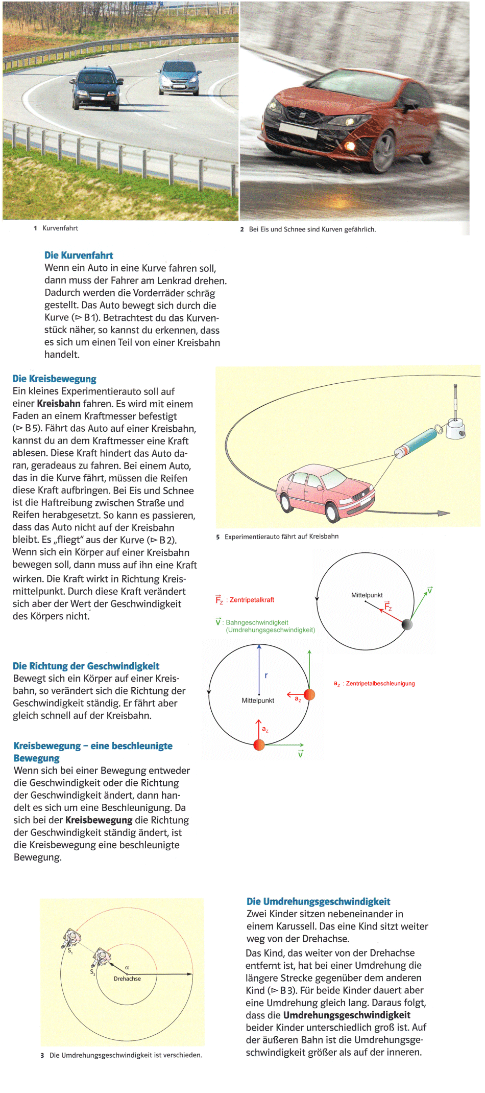 In einer Straßenkurve zu fahren, ist für eine kurze Zeit auch eine kreisförmige Bewegung.